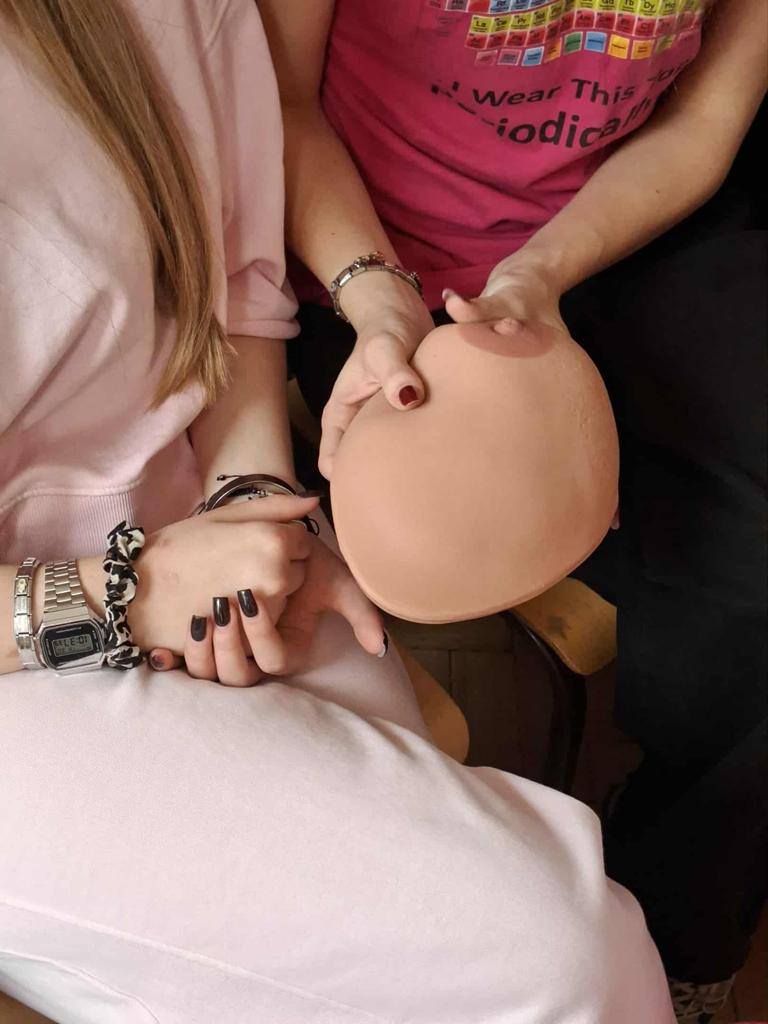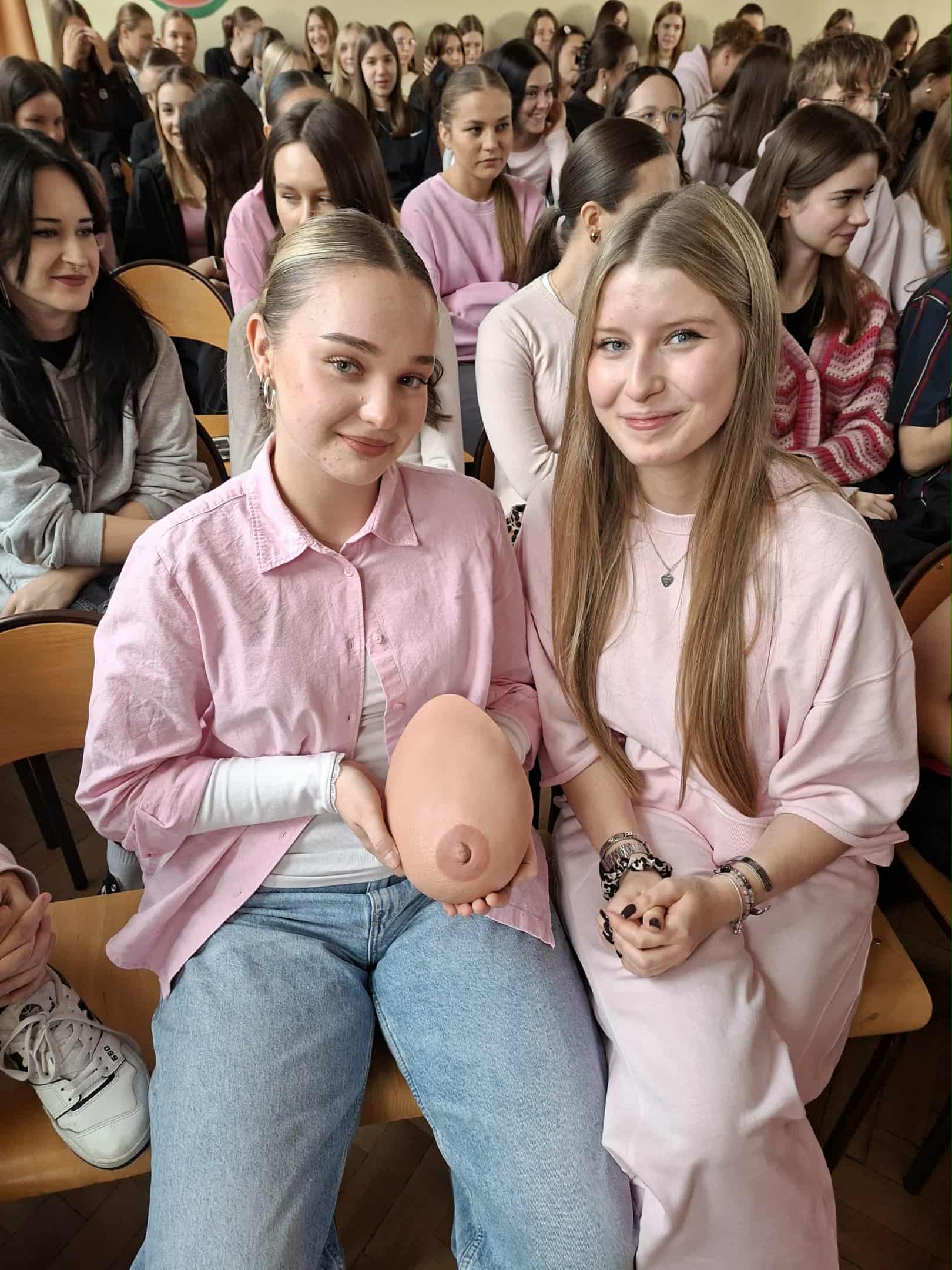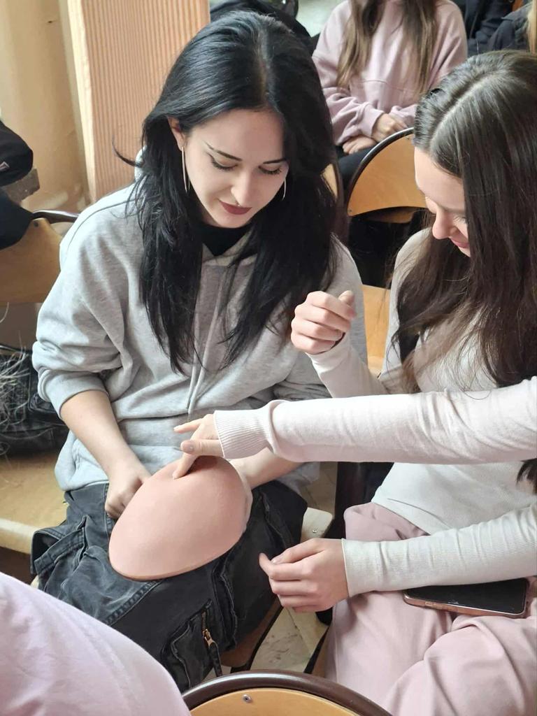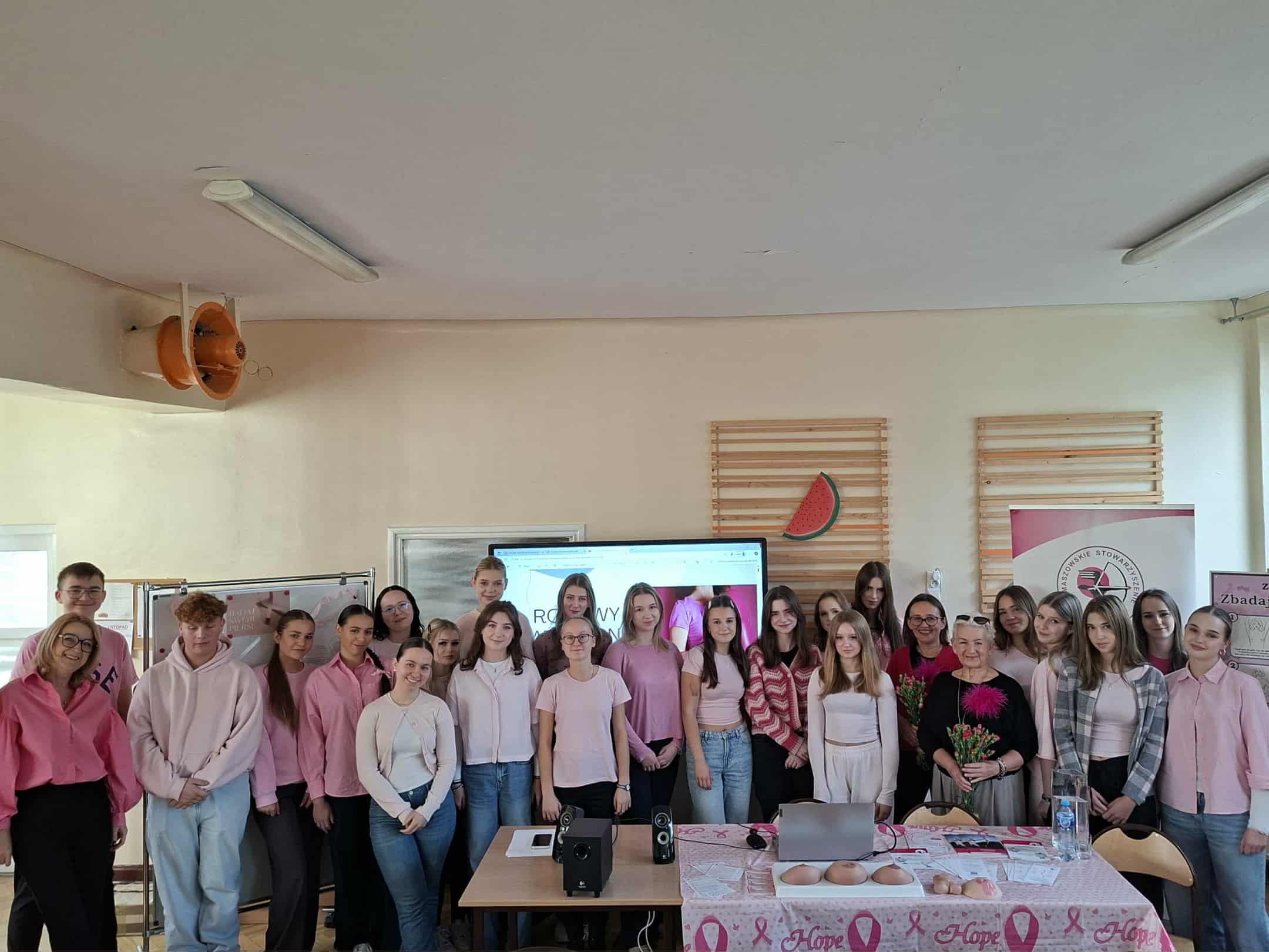 W ramach akcji "Październik Miesiącem Walki z Rakiem Piersi" klasy 4 b-ch oraz dziewczęta z klas 4 men, 4 i-m, 4 m-ch i 1 hp uczestniczyły w spotkaniu z przedstawicielkami Tomaszowskiego Stowarzyszenia Amazonek zorganizowanym przez Panią Kingę Marcińczak i Panią Annę Wojciechowską. Uczniowie zapoznali się z czynnikami ryzyka tego nowotworu, sposobami leczenia, a co najważniejsze z zasadami jego profilaktyki. Dziewczęta miały możliwość na fantomach piersi nauczenia się technik samobadania i wykrywania zmian.