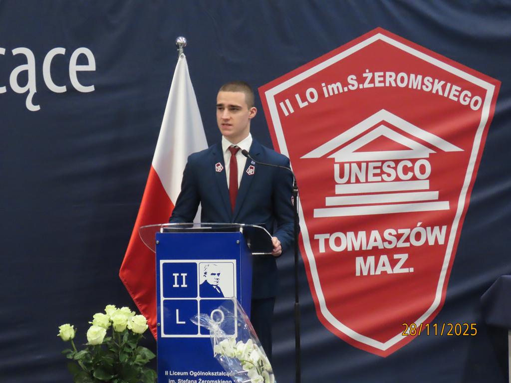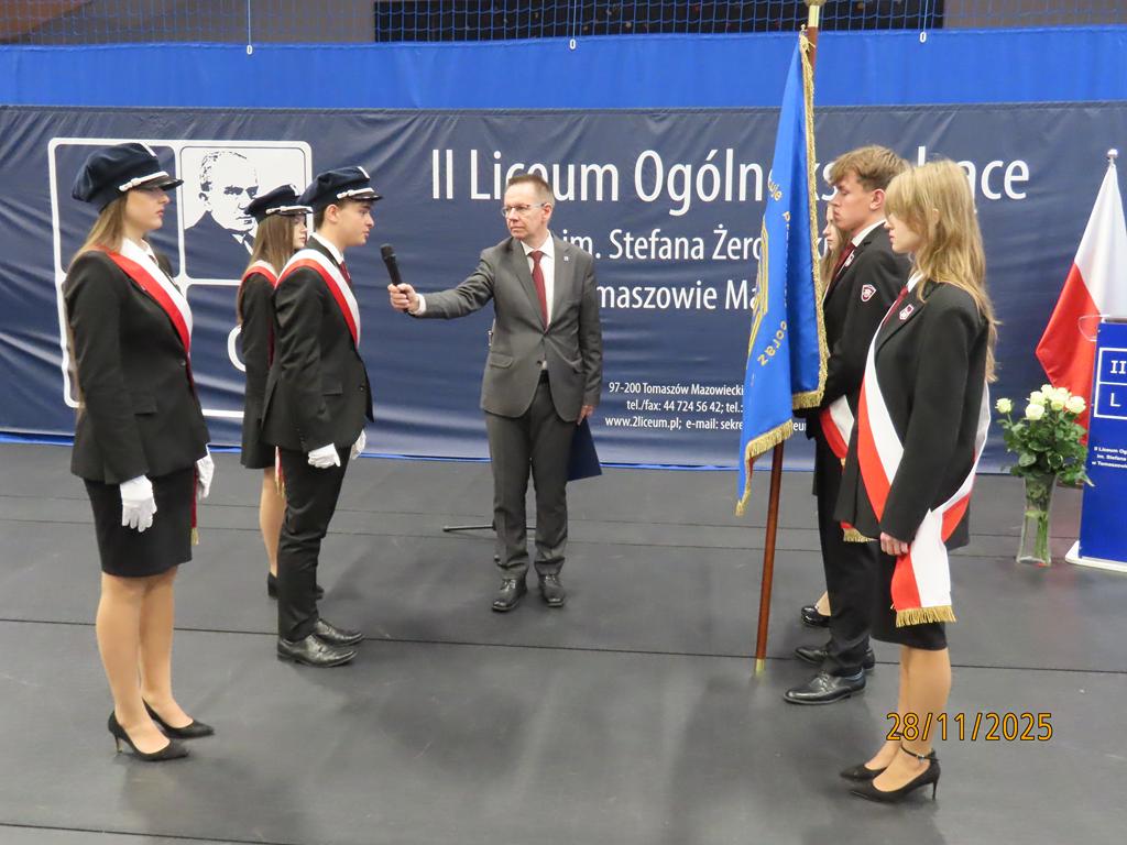 28 listopada obchodziliśmy w II LO Święto Patrona naszej szkoły, czyli Stefana Żeromskiego. Po odśpiewaniu hymnu państwowego oraz wystąpieniu dyrektora Pana Arkadiusza Broniarka, uczniowie klas pierwszych złożyli ślubowanie na sztandar szkoły.