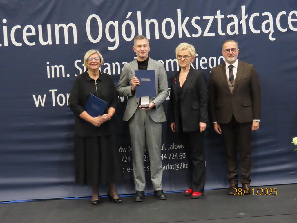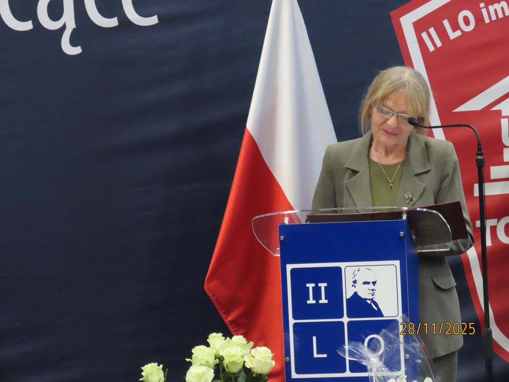W dalszej części uroczystości o czasie spędzonym w murach II LO oraz o swojej karierze opowiedział dziennikarz TVN24 Pan Konrad Borusiewicz, który uhonorowany został "Arbuzem na medal". Otrzymują go ci absolwenci naszej szkoły, którzy "nie zawiedli".